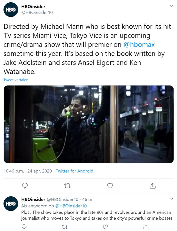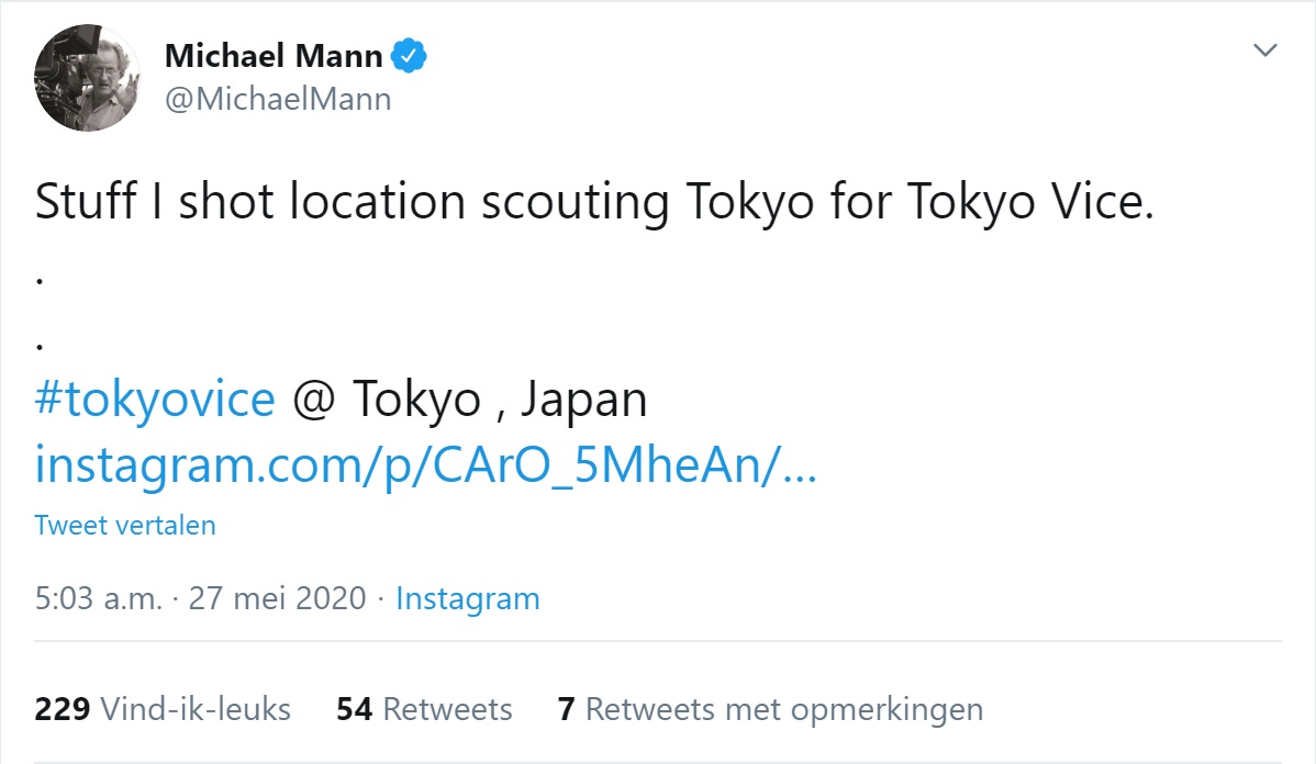 Michael Mann werkt momenteel aan een nieuw project genaamd Tokyo Vice . Deze serie speelt zich af in Tokyo . Tokyo Vice (TV Series) - IMDb