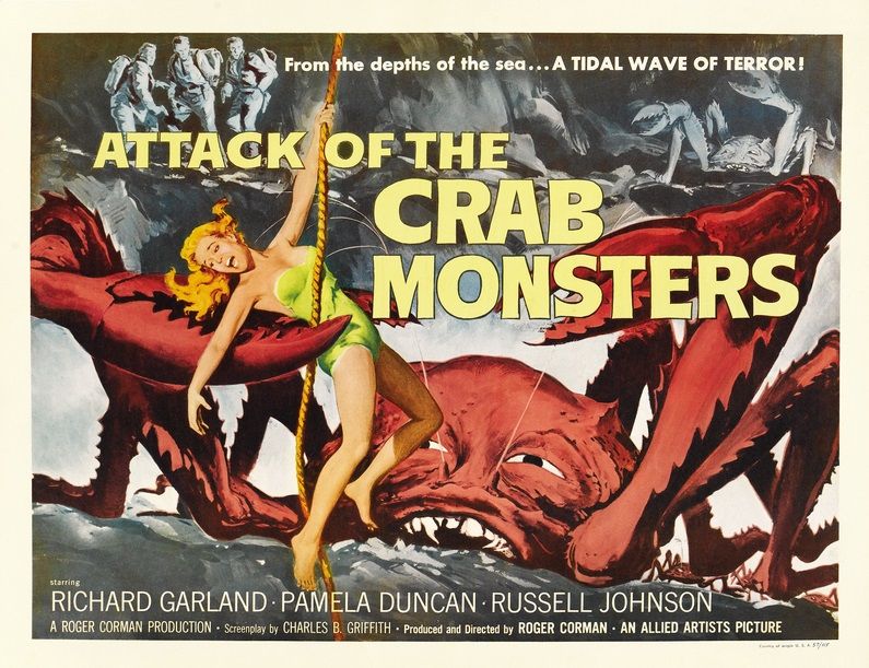 In navolging van Joolstein en omdat ik op zoek was naar een kort filmpje voor de treinreis naar mijn werk, heb ik ook Attack of the Crab Monsters (1957) maar een kansje gegeven. Inderdaad ingehaald door de tijd, maar Cormans films hebben vaak een hoog genoeg campgehalte om alsnog de moeite waard te zijn. Voor mij bestaat de primaire aantrekkingskracht uit aanschouwen wat ze met beperkte middelen hebben kunnen doen, en de interactie tussen de door hen gecreëerde monsters en de (vaak bordkartonnen) personages.