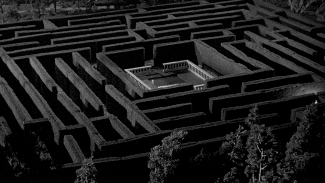 Redelijk ambitieus voor een film uit de vroege jaren 50. Gerald en Kitty, een jong koppel, staan op het punt te trouwen. Als Gerald door een oom wordt gevraagd om naar zijn kasteel te komen, verbreekt hij de verloving met Kitty via brief. Kitty wil uitzoeken wat er gaande is op het kasteel en trekt erheen samen met haar tante. Gerald is niet blij met hun komst, ziet er bovendien 10 jaar ouder uit en is bijzonder onaangenaam tegenover zijn onverwachte gasten. 's Avonds zijn er vreemde geluiden, zitten er geesten of een monster? De vorige kasteelheren bleken bovendien ook allemaal op jonge leeftijd te sterven. Zowel Kitty als haar tante gaan op verkenning en vinden het antwoord uiteindelijk in het labyrint. Het doolhof ziet er wel fraai uit vanuit vogelperspectief en het is jammer dat er niet meer gebruik van werd gemaakt noch van het kasteel voor meer exploratie want dat levert toch een paar spooky momenten op. De onthulling is toch wel verrassend te noemen, echt zoiets van wtf. Er komt een uitleg aan het einde die nog steeds de vraag onbeantwoord laat waarom Gerald zo onaangenaam was noch waarom de vorige kasteelheren zo vroeg stierven. Een beetje flauwe pay off eigenlijk volgens mij te wijten aan een zwak scenario.