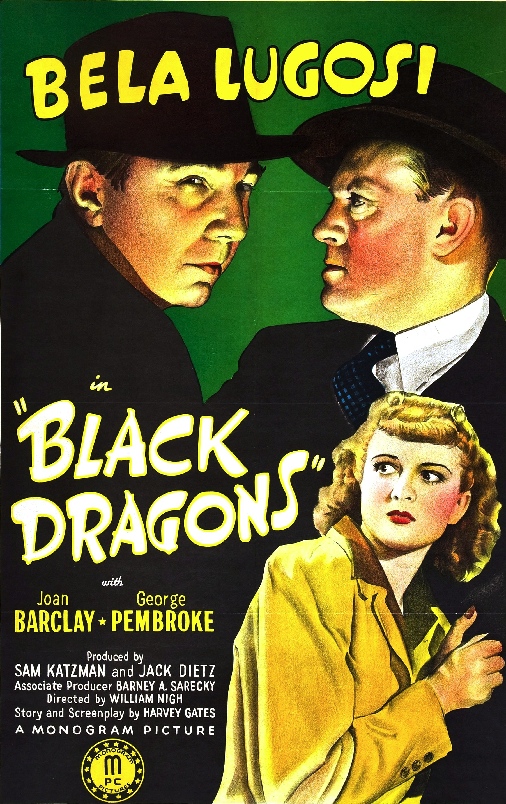 Ik denk dat 'Black Dragon' misschien wel Bela Lugosi's meest vreemdste C-film is (je kan niet eens van een B-film spreken) Geregisseerd door William Nigh in 1942 en dus met Lugosi als Dr. Melcher en Monsieur Colomb. Een sinistere kerel die plots tevoorschijn komt, als er een stel Amerikaanse industriëlen op mysterieuze wijze worden vermoord. Ook is er de mooie Joan Barclay als de nicht Alice van Dr. Saunders (Robert Frazer), die verwikkeld is in wat er dan ook gaande is. En er is ook nog de toekomstige Lone Ranger Clayton Moore als een FBI-agent te zien. Zo we hebben mysterieuze sterfgevallen, we hebben Lugosi. Het moet dus wel een horrorfilm zijn toch ...? ahem, nee. Het is 1942 en de VS is in oorlog met de Japanners. De aanval op Pearl Harbor was een maand eerder. Zo de baas van Monogram Sam Katzman zag dat er geld te verdienen viel en liet een thriller maken in combinatie met WW2-propaganda. Dus Black Dragons is niets anders dan een anti-Japanse film. Een plotje waarbij het draait om een complot van de Japanners en de Duitsers. En niet van het soort dat nu heel goed is!