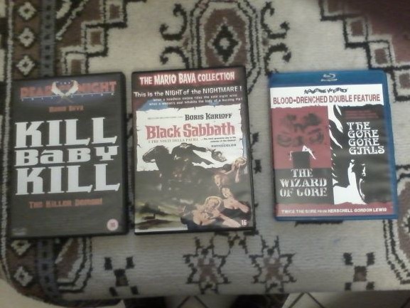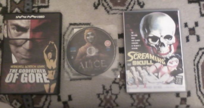 We zijn nog geen week ver en er is al erg veel bekeken. Ik heb het nog niet eerder geweten dat er zoveel users tegelijk zo hard gaan. Toch eens tijd om het prijzenpakket te displayen. Allereerst excuses voor de matige beeldkwaliteit van de foto's. Mijn fototoestel is in bruikleen dus ik was genoodzaakt om mijn tablet te gebruiken om plaatjes te schieten. Onderstaande films heb ik in een andere versie meestal blu-ray, met (meer) extra's. Enkel The Screaming Skull is er eentje die ik niet op reserve heb. Deze zet ik immers toch nooit op. De enige blu-ray met de HGL combo is wel een regio A waar dus een regiovrije blurayspeler voor nodig is.