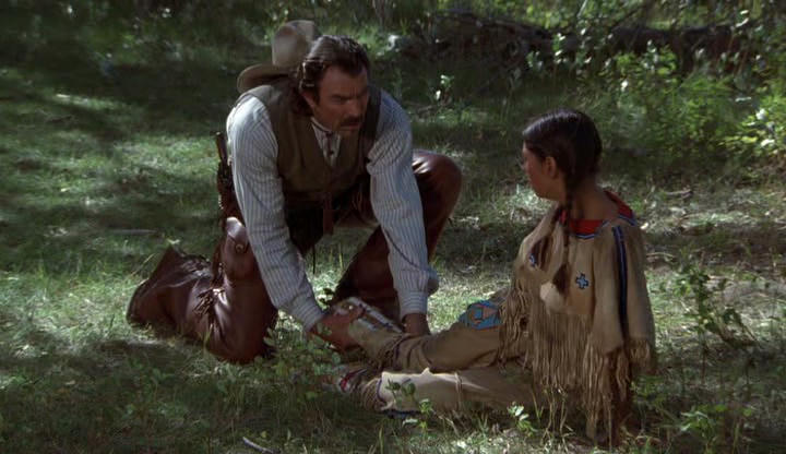 Het was een western. En het enige wat ik ervan kan herinderen was dat een mannelijke personage een indiaanse vrouw tegenkomt die gevallen is of zoiets.