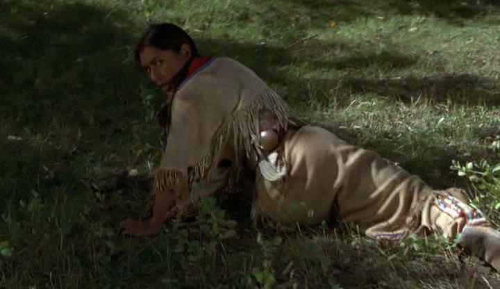 Het was meer een scene dat een indiaanse vrouw tegen een boom lag omdat haar been/knie/voet gebroken is (ze kon in iedergeval niet lopen)