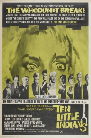 De film 10 Little Indians weet van begin tot eind voldoende te boeien. Het verhaal blijft onderhoudend dankzij het intrigerende concept van tien mensen die één voor één verdwijnen onder mysterieuze omstandigheden. Die opzet zorgt ervoor dat je als kijker voortdurend blijft meedenken en speculeren. Het slot is bijzonder sterk uitgewerkt. Enerzijds is er een opvallend moment waarin de regisseur als het ware een korte pauze inlast, waardoor je nog even de tijd krijgt om zelf na te denken over de identiteit van de moordenaar, terwijl de gebeurtenissen nog eens kort worden overlopen. Anderzijds weet de uiteindelijke ontmaskering toch te verrassen: de dader is niet meteen degene die je verwacht. Hoewel de film vandaag de dag wat ouderwets en licht gedateerd kan aanvoelen, blijft het geheel zeker de moeite waard als klassieke thriller. De sfeer en spanning houden goed stand, en de cast draagt daar zeker toe bij. De blonde dame is herkenbaar als de iconische gouden vrouw uit Goldfinger, en ook de andere vrouwelijke rol mag er absoluut zijn. Kortom: een enigszins gedateerde, maar nog steeds vermakelijke en spannende film die liefhebbers van klassieke whodunits zeker zal aanspreken. 6/10